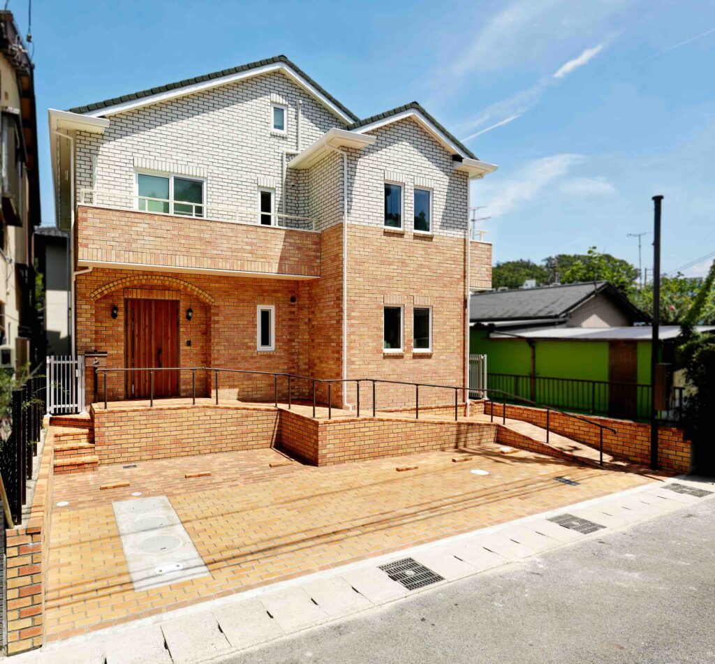 ツートンの明るいデザインが印象的なレンガ積みの家です。